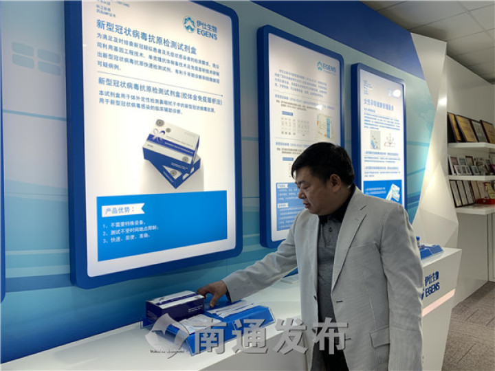 “新型冠狀病毒快速檢測試劑突破了現(xiàn)有核酸檢測方法對人員及場所的限制,不需要借助專用儀器設(shè)備,直接顯色肉眼就可以判斷結(jié)果,檢測用時短,方便快捷。新型冠狀病毒抗體檢測試劑可以檢測全血、血清、血漿,新型冠狀病毒抗體檢測試劑可以檢測鼻、咽拭子等多種樣本?!痹谄髽I(yè)產(chǎn)品展覽室,歐衛(wèi)軍拿起產(chǎn)品介紹:“目前國外需求量以新冠抗原檢查試劑為主,伊仕產(chǎn)品15-20分鐘就能出結(jié)果,這一手段有利于病毒感染診斷和排除可疑病例,檢測結(jié)果和核酸檢測的高度一致,對防止病毒傳播有重大意義?!?br />