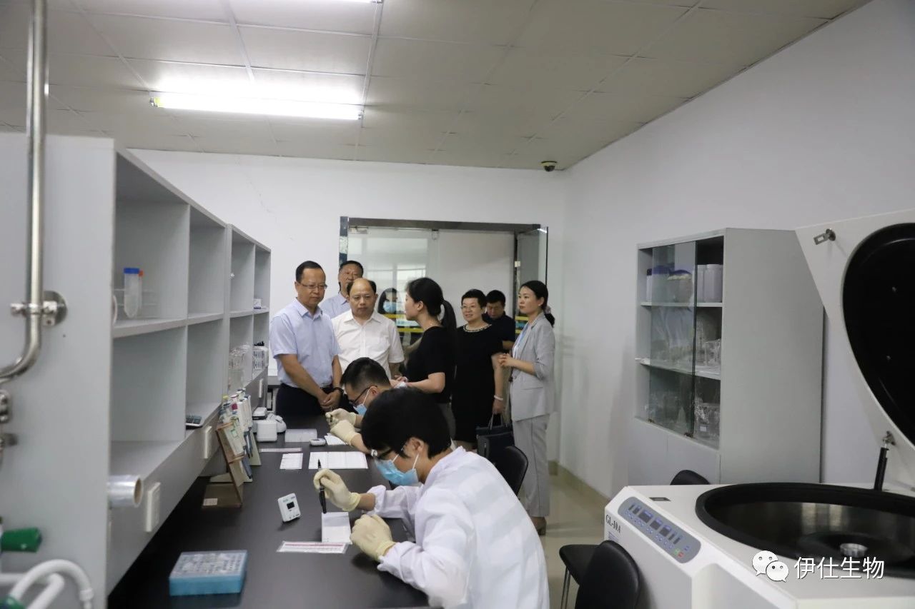 王蕾博士帶領(lǐng)調(diào)研組考察伊仕生物研究院生物原料開發(fā)及各實(shí)驗(yàn)室,介紹研究項(xiàng)目情況,顧飛總監(jiān)介紹公司新冠檢測產(chǎn)品技術(shù)優(yōu)勢。