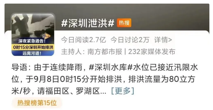5日-9日,臺(tái)風(fēng)“???/span>先后兩次登陸福建、廣東。受其影響,南方多地出現(xiàn)特大暴雨,福建省、廣東省氣象臺(tái)多次發(fā)布“暴雨預(yù)警一級(jí)”。福州、廈門、漳州、深圳、廣州、佛山等城市內(nèi)澇嚴(yán)重,部分城市雨水齊腰,短時(shí)間強(qiáng)降雨超過(guò)100毫米,深圳降雨量更是打破1953年以來(lái)的降雨極值,地鐵灌水,深圳泄洪多次登上各大平臺(tái)的熱搜第一。