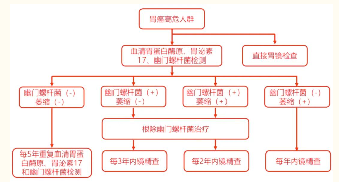 2014年4月,我國(guó)提出《中囯早期胃癌篩查及內(nèi)鏡診治共識(shí)意見》,共識(shí)推薦聯(lián)合血清學(xué)檢查胃蛋白酶原和幽門桿菌對(duì)胃癌高危人群進(jìn)行檢測(cè)的路徑。